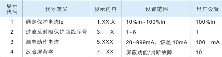 額定動作電流值可在上表中"額定保護電流le設置范圍"內任意設置。