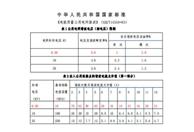 在未安裝有源濾波器是經過測量 3 次和 5 次諧波較為嚴重其 ABC 三相諧波電流為 234A 246A 246A 中THD值(諧波畸變 率)為 26.1% 24.1% 29.4% 未達到國家標準。在安裝有源濾波器后并調試完成再次測量諧波 3 次和 5 次諧 波 ABC 三相諧波電流分別為 27A 15A 34A 中的THD值(諧波 畸變率)為 4.5% 2.3% 6.0%幾乎達到國家標準規定數據內。使企業節省了電能,經濟效益顯著提高,預測節能達到百分 之 5 點到 10 點的區間。使變壓器和用電設備有了安全保障 提高了工作效率保障用電安全。(下圖如國家標準電能質量 表)