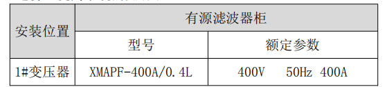 4.2 現場電能質量選型和制訂 首先,要保證功率因數要達到要求,諧波治理方案要能夠保障主要諧波吸收或抵 消目的的實現,要保障諧波治理設備投入使用后系統電路內的諧波量 對設備影響較小;其次,系統改進方案要保障裝置自身的安全性。動 力柜穩定電流按照正常 30%的設計要求使用 400A 有源濾波器可以治 理設備的諧波. 這個安全性主要是指在系統當前存在的諧波電流、電壓的背景下,有 第三,需要設計方案的性價比,在可能的情況下盡量降低系統 造價,提高系統的實用性;