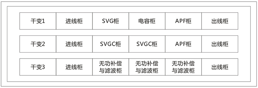 1、干變1號(hào),由APF補(bǔ)償諧波,電容柜補(bǔ)償無(wú)功,SVG柜補(bǔ)償剩余無(wú)功與不平衡。