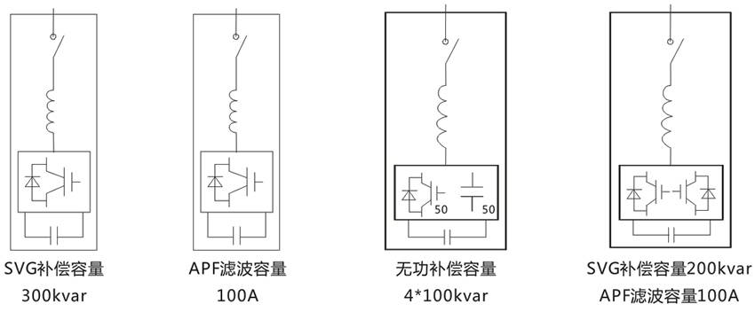 1、SVG+C的配合中,SVG可選50kvar、lOOkvar,C選取同等規(guī)格。50kvar SVG功率模塊同50kvar電容組成100kvarXMPQ MSVGC模塊,實(shí)現(xiàn)O~100kvar無(wú)級(jí)差補(bǔ)償,100kvar SVG功率模塊同100kvar電容組成00kvar XMPQ SVGC模塊,實(shí)現(xiàn)0~200kvar無(wú)級(jí)差補(bǔ)償。